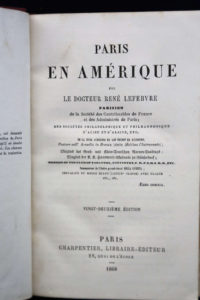 [LABOULAYE (Édouard LEFEBVRE de)] – Paris en Amérique, par le Docteur René Lefebvre, Parisien, de la Société des Contribuables de France et des Administrés de Paris ; des Sociétés Philadelphiques et Philharmoniques d’Alice et d’Alaise ;...