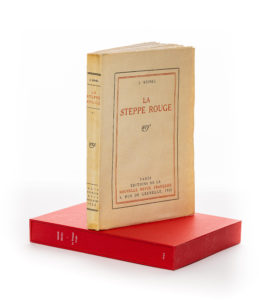 Paris, Éditions de la NRF, (24 octobre) 1922. 1 vol. (170 x 220 mm). Broché, non coupé, chemise et étui (elbel libro).Édition originale. Un des 108 premiers exemplaires réimposés sur vergé pur fil (n° LXXI), celui-ci nominatif, imprimé pour Louis Brun. Envoi signé : « à Louis Brun, qui a eu confiance dans la “Steppe”, cordial souvenir de J. Kessel ».