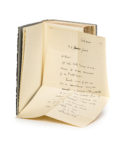 Paris, Denoël et Steele, [octobre] 1932. 1 vol. (115 x 185 mm). Box noir, important décor composé d’un jeu de petites pièces mosaïquées de box anthracite et blanc, dos orné du même décor, titre doré, tranches dorées sur témoins, doublures et gardes de box gris perle, couvertures et dos conservés, chemise et étui (P. L. Martin, 1965).Édition originale. Un des 100 [200] exemplaires sur alfa (n° 85). Montée en tête : lettre autographe de 1 f. (175 x 265 mm), à l’encre noire, signée « Destouches » et datée « Californie, le 7 juillet ». Entre mai et août 1934, Céline entreprit un voyage aux États-Unis pour rejoindre Élisabeth Craig : « […] quant à moi je vis ici dans un cauchemar 100 /100 à propos d’Élisabeth ». Avec un mot de Pierre-Lucien Martin au commanditaire de cette reliure, Max Schleiffer, daté du 22 décembre 1965, sur 1 feuillet à en-tête (210 x 135 mm). De la bibliothèque Jean-Charles Lissarague (ex-libris).