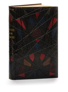 Paris, Denoël, (22 décembre) 1938. 1 vol. (140 x 220 mm). Maroquin noir, décor mosaïqué passant sur le dos composé d’un réseau de filets à froid et de petites pièces de maroquin de différentes couleurs, titré doré, date en pied, doublures et gardes de chèvre velours bordeaux, listel de box sur les gardes, tranches dorées sur témoins, couvertures et dos conservés, chemise et étui bordé (Paul Bonet, 1950).Édition originale. Un des 15 premiers exemplaires sur japon (n°1). Seule reliure exécutée par Paul Bonet sur ce livre. De la bibliothèque Jean-Charles Lissarague (ex-libris Artcurial, 2009, n° 17).