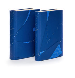 Paris, Gallimard, (20 avril et 14 septembre) 1949. 2 vol. (130 x 205 mm). Reliures doublées en simili cuir bleu, dos lisse, décors mosaïqués en relief sur les plats, avec une variante pour le tome II, et rehaussés de pointillés à l’œser passant sur le dos, titres à l’œser, gardes de velours bleu, couvertures et dos conservés, emboîtages * (F. Brindeau, 2016).Édition originale. Un des 55 premiers exemplaires sur vélin pur fil (n° III). De la bibliothèque Vincent Morel (ex-libris).