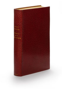 Paris, Gallimard, (4 mars) 1957. 1 vol. (115 x 185 mm). Maroquin framboise doublé de box tabac, dos lisse, titre doré, date en pied, tranches dorées sur témoins, filet sur les coupes, gardes du même box, couvertures et dos conservés, étui bordé (C. Dreneau).Édition originale. Un des 45 premiers exemplaires sur vélin de hollande (n° 19).