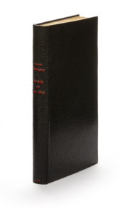 Paris, Gallimard, coll. « Du monde entier », (8 mai) 1964. 1 vol. (120 x 195 mm). Maroquin noir janséniste, dos lisse, titre à l’œser rouge, date en pied, doublures et gardes de chèvre velours rouges, tranches dorées sur témoins, couvertures et dos conservés, étui (Loutrel-Delaporte).Édition originale de la traduction française par Marc Saporta. Un des 112 premiers exemplaires sur vélin pur fil (n° 67), seul papier. Dos de la couverture insolé.