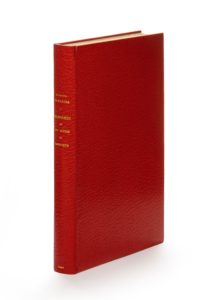 Paris, Gallimard, (9 mars) 1967. 1 vol. (135 x 200 mm). Maroquin rouge, dos lisse, titre doré, date en pied, tranches dorées sur témoins, doublures et gardes de chèvre velours sable, couvertures et dos conservés, étui bordé (Loutrel-Delaporte).Édition originale dont il n’a pas été tiré de grands papiers. Exemplaire poinçonné du service de presse. Envoi signé : « À Francis Ambrière en hommage M. Tournier ».