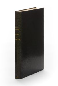 Paris, Gallimard, (1er avril) 1977. 1 vol. (145 x 215 mm). Maroquin marine, dos lisse, titre doré, date en pied, tranches dorées sur témoins, doublures et gardes de chèvre velours vertes, couvertures et dos conservés, étui bordé (Loutrel-Delaporte).Édition originale. Un des 35 premiers exemplaires sur vélin d’Arches (n° 28), seul papier.