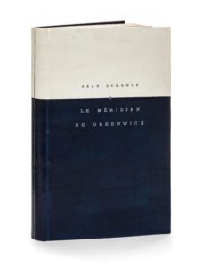 Paris, Éditons de Minuit, (26 février) 1979. 1 vol. (140 x 225 mm). Veau blanc et veau naturel teinté bleu : les deux peaux montées horizontalement et passant sur le dos, estampées à froid, dos lisse orné d’un filet vertical à l’œser à l’or blanc, titre à l’œser sur le premier plat, doublures de papier bleu métallisé, gardes de chèvres velours grises, tranches dorées sur témoins à l’or blanc, couvertures et dos conservés, chemise et étui (Louise Bescond, 2017- titrage C. Ribal).Édition originale. Un des 32 premiers exemplaires sur alfa mousse (n° 23).