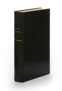 Paris, Gallimard, (2 janvier) 1990. 1 vol. (145 x 215 mm). Maroquin vert, dos lisse, titre doré, date en pied, tranches dorées sur témoins, doublures et gardes de chèvre velours grises, couvertures et dos conservés, étui bordé (Loutrel-Delaporte).Édition originale. Un des 91 premiers exemplaires sur vélin de Rives (n° 90). Exemplaire signé : « Milan Kundera, Paris, le 2 décembre 2011 ».