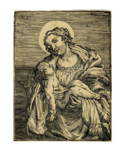 Xilografia. mm 163x123. Bella prova di autore veneto presumibilmente riconducibile alla cerchia di Niccolò Boldrini (Vicenza, 1500 - Venezia, 1570), impressa con buona evidenza di segno e traccia di gauffrage al verso, su carta vergellata sottile priva di filigrana. (1) Foglio applicato per due punti in alto a cartoncino moderno.