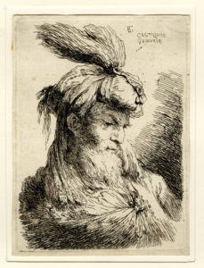 Giovanni Benedetto Castiglione (detto il Grechetto), Testa di vecchio con turbante volto a destra. 1645-1647.