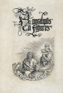Albrecht Dürer, Apocalipsis cum figuris / La Vergine appare a San Giovanni. Frontespizio per l'Apocalisse. 1511 ca.