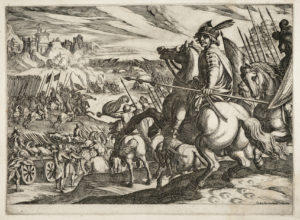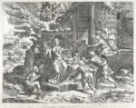 Acquaforte e bulino. mm 365x458. Foglio: mm 375x465. In basso al centro "P. Stephanonius. for:" in basso a destra la firma e la data di esecuzione "Girardo Fontana / Fredo Fecit 1579.". Da invenzione di Polidoro da Caravaggio. Copia in controparte dall'incisione di Cornelius Cort. Tiratura ottocentesca dai rami della Calcografia Nazionale su carta con filigrana "fiore di giglio in doppio cerchio" e "grande stemma". SI AGGIUNGE: Antonio Tempesta (Firenze, 1555-Roma, 1630). Scena di battaglia. Acquaforte. mm 237x326. Foglio: mm 263x360. Ottima impressione su carta vergellata. (2) OPERA 1: Piccoli margini oltre la battuta del rame. Traccia di piega verticale al centro. Tracce d'uso. OPERA 2: Grandi margini. Ottima conservazione.
