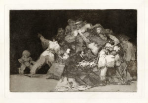 Acquaforte e acquatinta brunita. mm 243x353. Foglio: mm 315x405. Harris, 256. Nona tavola da Los proverbios. Esemplare nel III stato su 3, dalla V edizione (di 9) stampata dalla Calcografia per la Real Academia nel 1904. Ottima impressione nitidamente stampata in nero e bruno su carta spessa non vergellata. (1) Foglio integro con margini originari. Al verso lievi tracce di distacco.