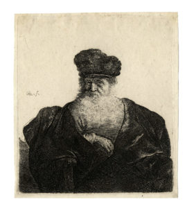 Vecchio con barba, cappello di pelliccia e mantello di velluto. XIX secolo.