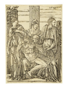 Bulino. mm 247x180. Foglio: mm 254x185. TIB 31/15, 2. Firmata e datata «65» sulla lastra in alto a destra. Raro foglio di questo artista di cui sono note soltanto due incisioni. Ottimo esemplare nitidamente impresso su carta sottile non vergellata. Al verso in basso marchio di collezione "COLL.EUG.TINTO" , non su Lugt. (1) Margini di 3-4 mm oltre l'impronta della lastra, al verso residuo di due brachette di carta e di vecchia colla su tre angoli.