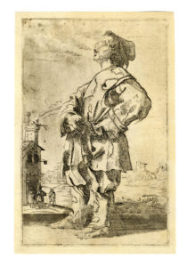 Acquaforte. mm 257x168. Foglio: mm 276x183. Hollstein, 1. Il soggetto ritrae un piccolo mendicante sullo sfondo di uno scorcio di Parigi, sembra di riconoscere la Tour de Nesle sulla sinistra e Pont Neuf in lontananza. Ottima prova su carta vergellata con filigrana "lettera P in cerchio singolo sormontato da stella a sei punte". Questo singolare autore si dedica all'attività intellettuale e artistica dopo una vita trascorsa con alti incarichi militari. Figlio di Federico Elettore Palatino e Elisabetta di Boemia nacque a Praga quando i genitori vi risiedevano come regnanti di Boemia. Trascorre la gioventù nei Paesi Bassi e nel 1642 diviene comandante della cavalleria dello zio Carlo I d'Inghilterra. Durante le guerre anglo olandesi tra il 1665-1667 e 1672-1674 è al comando della marina britannica. Viene ricordato per il suo ruolo nello sviluppo della tecnica del mezzotinto. (1) Buoni margini oltre la battuta del rame. Ottimo stato di conservazione.