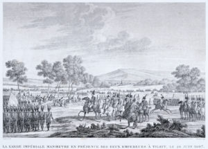 Bulino. mm 295x390. Dal dipinto di Roberto Focosi (Milano, 1806-1862). Incisione premiata dall'Accademia di Belle Arti di Milano nel 1850. SI AGGIUNGE: Edme Bovinet (Chaumont, 1767- Creil, 1832), La garde impériale manoeuvrant en présence des deux empereurs à Tilsit, le 28 juin 1807. 1820 ca. Bulino. mm 250x378. Foglio: mm 330x490. Dal dipinto di J.F. Swebach (1769 - 1823). Napoleone e lo zar Alessandro I si incontrano a Tilsit (odierna Sowetsk) per firmare un trattato di pace. (2) OPERA 1: In cornice dorata moderna, cm 46,5x56,5. OPERA 2: Foglio sciolto.