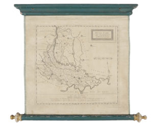 Incisione in rame. mm 465x490. Aperta con il montaggio mm 530x640. Su disegno di Mauro Fornari monaco olivetano. Bartolotti e Riboldi incisero Milano 1789. La carta appartiene alla serie di mappe delle province lombarde pubblicate fra il 1786 e il 1789 dal Fornari. (1) Carta intelata e montata con bacchette in legno laccate in verde scuro al margine superiore e all'inferiore. Diffuso ingiallimento.
