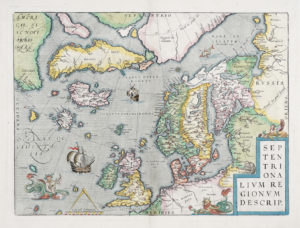 Abraham Ortelius, Septentrionalium Regionum Descrip. / Mappa dell'Atlantico del Nord. Antwerp: 1572-1573.