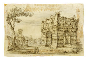 Anonimo della fine del XVII secolo, L'arco di Giano con la chiesa di San Giorgio in Velabro.