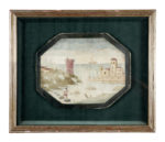 Tempera a colori su supporto ottoganale in scagliola. cm 21,5/22,5x27. I due pannelli sono pervenuti con un'indicazione attributiva ipotetica a Marco Mazelli /1640-1709/1713) (2) Entrambe le tavole in cornice dorata moderna, con la cornice cm 35x41,5.
