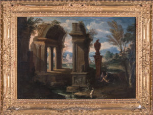 Olio su tela (prima tela). cm 55,5x78. (1) In bella cornice intagliata e dorata,cm 74x97.