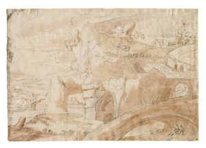 Penna e inchiostro bruno, pennello e acquerello seppia, tracce di matite di grafite, rialzi in bianco su carta vergellata color avorio. mm 235x345. All'angolo inferiore destro marchio della collezione di Paul Mathias Polakovits (Budapest 1921-Paris 1987), Lugt 3561. Provenienza: Sotheby's, Amsterdam, 15/11/1995, lotto 52. Christie's, South Kensington, 09/07/2009, lotto 532. Italia, collezione privata. (1) Applicato per i tre angoli e inserito in passepartout decorato moderno.