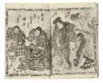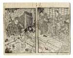 Formato: mm 178x115/118. Due piccoli volumetti illustrati con scene della vita di un samurai. Xilografie in nero impresse su carta di corteccia di gelso. Legatura in carta con bella xilografia a colori al piatto anteriore raffigurante un samurai e una bijin. (2) Ottima conservazione, lievissime tracce d'uso. Uno dei due volumetti presenta traccia di tarlo dal piatto anteriore ad alcune pagine interne, e in alto alla giuntura delle pagine.