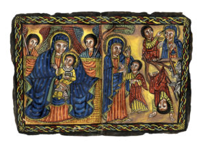 Arte copto etiope fine XIXprima metà XX secolo, Madonna in trono col Bambino e due angeli.