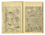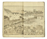 Formato: mm 227/245x158/162. Volume 4 e 7 da Hokusai Manga raccolta di quindici (gli ultimi tre pubblicati dopo la morte dell'artista), che racchiude illustrazioni di figure umane, fiori e uccelli, paesaggi e altri soggetti, senza una precisa continuità; una vera e propria guida per rappresentare svariati soggetti in attitudini diverse e un ottimo manuale di disegno dell'epoca, oggi gli Hokusai Manga offrono preziose informazioni sulla società e sulle tradizioni del tempo. SI AGGIUNGE: Id., Gojūsantsugi: Hokusai dōchū gafu (Le cinquantatre stazioni della Tokaido), vol. 1. Ristampa di epoca Meiji. (3) Tracce d'uso.