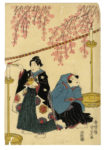 Utagawa Kunisada I (Toyokuni III), Due figure femminili e due candelieri sotto un ciliegio in fiore. 1830-1840.