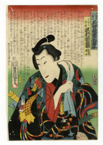 Utagawa Kunisada I (Toyokuni III), L'attore Sawamura Tanosuke nel ruolo di Jûjirô Mitsuyoshi. 1863.