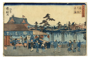 Utagawa Kuniteru II (Kunitsuna II), Kameido tenjin hana no sakari (Il santuario di Kameido in piena fioritura). 1854 (Kaei 7/Ansei 1).