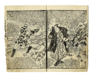 Formato: cm 17,8x11,8. Coppia di volumetti raffiguranti episodi di vita e di lotta. Xilografie in nero a doppia pagina. Legature in carta con belle xilografie a colori al piatto anteriore e carta decorata al posteriore (2) Legature con colori ben conservati, lievi tracce d'uso e di tarlo, alcuni forellini.