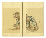 Formato: cm 25x16,3. Xilografia a colori. Sette fascicoli della rivista d'arte Bijutsu Sekai (Il mondo dell'arte) uscita in 25 numeri tra il 1890 e il 1894 a cura di Watanabe. La rivista presentava opere di noti maestri contemporanei e del passato. I venticinque numeri furono pubblicati dal 22 dicembre 1890 fino al numero finale del 2 gennaio 1894. Pubblicata da Shunyōdō, una casa editrice di Tokyo meglio conosciuta per la pubblicazione di romanzi illustrati, era curata da Watanabe Seitei celebre artista specializzato in kachōga ( dipinti di uccelli e fiori). Le opere degli artisti che compaiono nella rivista includevano quelle dello stesso Seitei, Kawanabe Kyōsai (1831-1889), Tsukioka Yoshitoshi (1839-1892), Kōno Bairei (1844-1895), Kobayashi Eitaku (1843-1890), Imao Keinen (1845- 1923), Shibata Zeshin (1807-1891) e, tra i maestri del passato, Kitagawa Utamaro (1753-1806), Maruyama Ōkyo (1733-1795), Yosa Buson (1716-1784) e Katsushika Hokusai (1760-1849). Il numero finale, il volume 25, consisteva solo di opere di Seitei.