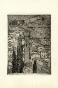 Acquaforte. mm 247x247. Foglio: mm 495x353. bellini-alberti, 19. Firmata a matita in basso a destra e controfirmata in lastra in basso a sinistra. SI AGGIUNGE: 2) Panorama di Fiesole. 1913-14. Acquaforte. mm 240x175. Foglio: mm 390x265. bellini-alberti, 10. Firmata a matita in basso a sinistra. Provenienza: Eredi Disertori.