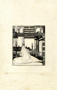 Calcografia. mm 160x130 (parte incisa); 220x190 (lastra). Foglio: mm 400x250. Firmata nella lastra in basso a destra. Sotto a matita numerata 13/75 e iscritta "G. Chini". Illustrazione per L'amore dei tre re di Sem Benelli, edito a Milano da Treves nel 1910. Nel volume le tavole erano originariamente stampate a cliché. Si tratta in questo caso di una stampa postuma su carta Fabriano dalla lastra incisa, di cui non sono note prove coeve. La tiratura a 75 esemplari numerati in cifre arabe delle sei illustrazioni calcografiche per Benelli fu eseguita nel 1984 a cura della nipote dell'artista Paola Chini. Un esemplare analogo a questo soggetto è stato esposto nella recente mostra monografica a Villa Bardini e pubblicato in Galileo Chini e il Simbolismo europeo, a cura di Fabio Benzi, Firenze 2021, n. 88 bis, p. 73. (1) Leggero foxing ai margini.