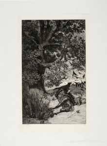Acquaforte. mm 365x230. Foglio: 470x370. singer, 62. Firma in lastra in basso a sinistra e a matita in basso a destra. Numero XI stampato in basso a destra, infatti è la tavola XI dagli Intermezzi. Esemplare nel III stato di 3. SI AGGIUNGE: 2) Mondnacht. Acquatinta su carta greve. mm 365x260. Foglio: mm 475x350. singer, 56. Stampati il nome dell'artista e il numero di tavola, IV, dagli Intermezzi in basso ai lati. Esemplare nel III stato di 3.