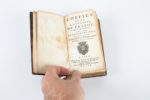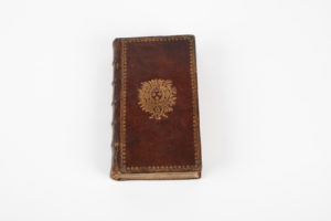 Plats aux armes avec une guirlande dorée en encadrement, dos à nerfs avec titre et chiffres dorés dans chaque caisson, toutes tranches dorées.