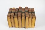 ancienne. Paris, Panckoucke, 1787/1792. Série de 8 volumes, 6 in-4°, 2 grands in-4° pour les atlas dans une reliure uniforme fin XVIIIème, tout début XIXème en demi-basane marron, dos lisses, avec guirlande dorée pour les faux nerfs, fleurons dorés intercalés, pièces de titre en maroquin rouge, maroquin vert pour la tomaison, tranches jaunes mouchetées.
