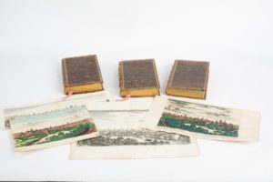 - Troyes, gravure format 33 x 18,5, impression en noir et blanc XVIIème, indication au crayon papier : merian 1620. Soit 3 volumes et 4 estampes. Ensemble vendu en l’état.