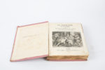 LA FONTAINE (Jean de) : La Fontaine en estampes ou nouvelle édition des fables plus complète que les précédentes. Paris, Nepveu, 1821. 1 volume in-4°, reliure d'époque à la Bradel en cartonnage recouvert de papier rose, dos lisse, pièce de...