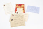 Monsieur FOUSSIER". Ce porte-documents contient : - Le menu du 19 octobre, - Un carton d'invitation du Président de la République et Madame Carnot pour Monsieur Foussier pour passer la soirée au Palais de l'Elysée le mardi 17 octobre ("on dansera") cachet à sec du Président, - Deux cartons d'invitation au nom de Monsieur Foussier fils et de Madame Vallette pour assister au concert donné à l'hôtel de ville le 19 octobre - Un carton au nom de Monsieur Foussier conseiller municipal pour assister au diner donné à l'hôtel de ville le 19 octobre.