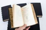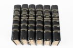 CERVANTES (Miguel de) : L'histoire de Don-Quichotte de la Manche. Paris, Jouaust, librairie des bibliophiles, 1884. 6 volumes in-12, reliure postérieure en plein maroquin noir, dos à nerfs avec guirlande dorée, auteur, titre et tomaisons dorés,...