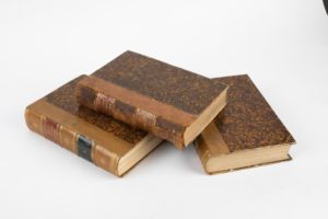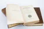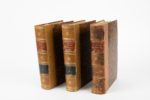 papier vert pour la tomaison. Tome 2 et 3 en assez bon état avec quelques défauts d'usage, en revanche la reliure du tome 1 a souffert ; cuir sec, épidermures, pièce de tomaison changée, coiffe en pied abîmée etc. mauvais état.