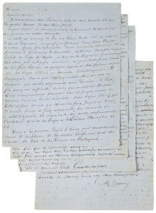 DUMAS Alexandre (1802-1870). — MANUSCRIT AUTOGRAPHE SIGNÉ à son docteur, le « 24 avril » (s.l.n.d.) 8 pp. in-4, sur papier bleu. — Transcription jointe.
