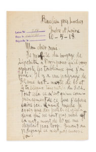 Les années 1916-1919 étant considérées par les critiques comme “les plus fertiles et les plus constructives” dans l’œuvre de celui qui fut peut-être “le plus classique des cubistes” (D.H. Kahnweiler), cette lettre est intéressante, car elle donne des précisions sur ses tableaux en cours.