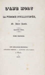 JANIN (Jules). — L’ÂNE MORT OU LA FEMME GUILLOTINÉE. — Quatrième édition. — Paris, Alexandre Mesnier, Alphonse Levavasseur, 1832. — 2 volumes in-12, maroquin rouge à long grain, triple filet doré, dos orné, roulette intérieure...