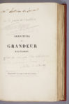 Sur le faux-titre, ENVOI DE L’AUTEUR à Pierre-Victorien Lottin de Laval (1810-1903), romancier normand né à Orbec et mort à Menneval, à qui l’on doit notamment une biographie de Marie de Médicis et des romans historiques comme Robert le Magnifique et Les Truands.