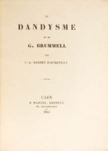 Jules BARBEY D'AUREVILLY. Du dandysme et de G. Brummell. Caen, B. Mancel, 1845.