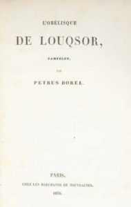 Pétrus BOREL. L'Obélisque de Louqsor, pamphlet. Paris, chez tous les marchands de nouveautés, 1836.